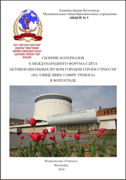 Сборник материалов форума-слета активов школьных музеев городов-героев стран СНГ объединил материалы по организации слета, походившего в г. Волгограде, программу и доклады конференции, методические разработки и сценарии мероприятий.